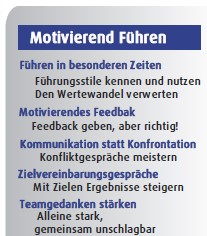Sichern Sie sich Ihren Platz für das Seminar: Motivierend Führen (max. 8 TN) Investition: € 795,-- / 2 Tage (Alle Preise netto)